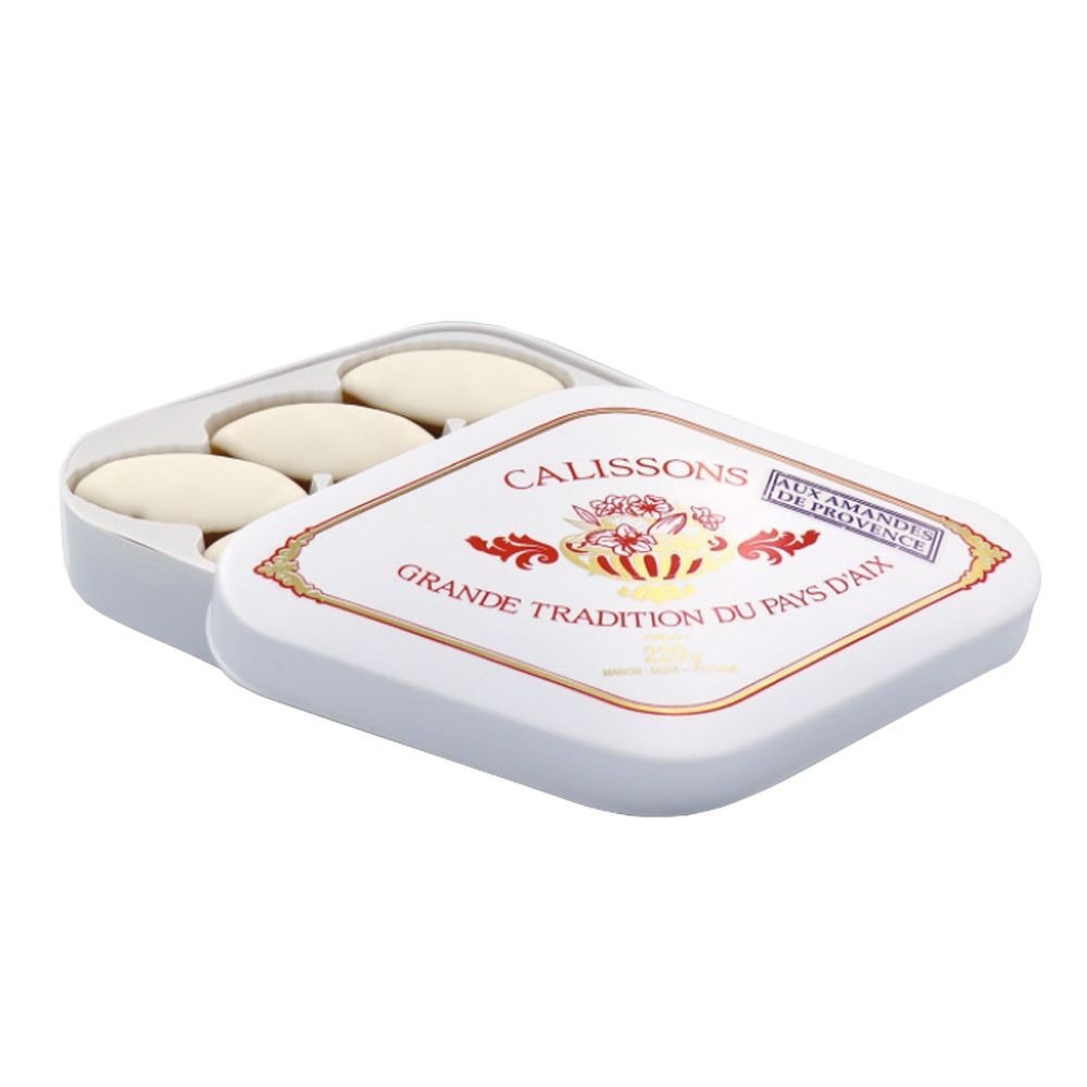 Le Calisson, en forme d’amande, est le résultat du mariage subtil entre l’amande et le melon confit de Provence, rehaussé d’un zeste d’écorces d’orange confites et recouvert de glace royale.