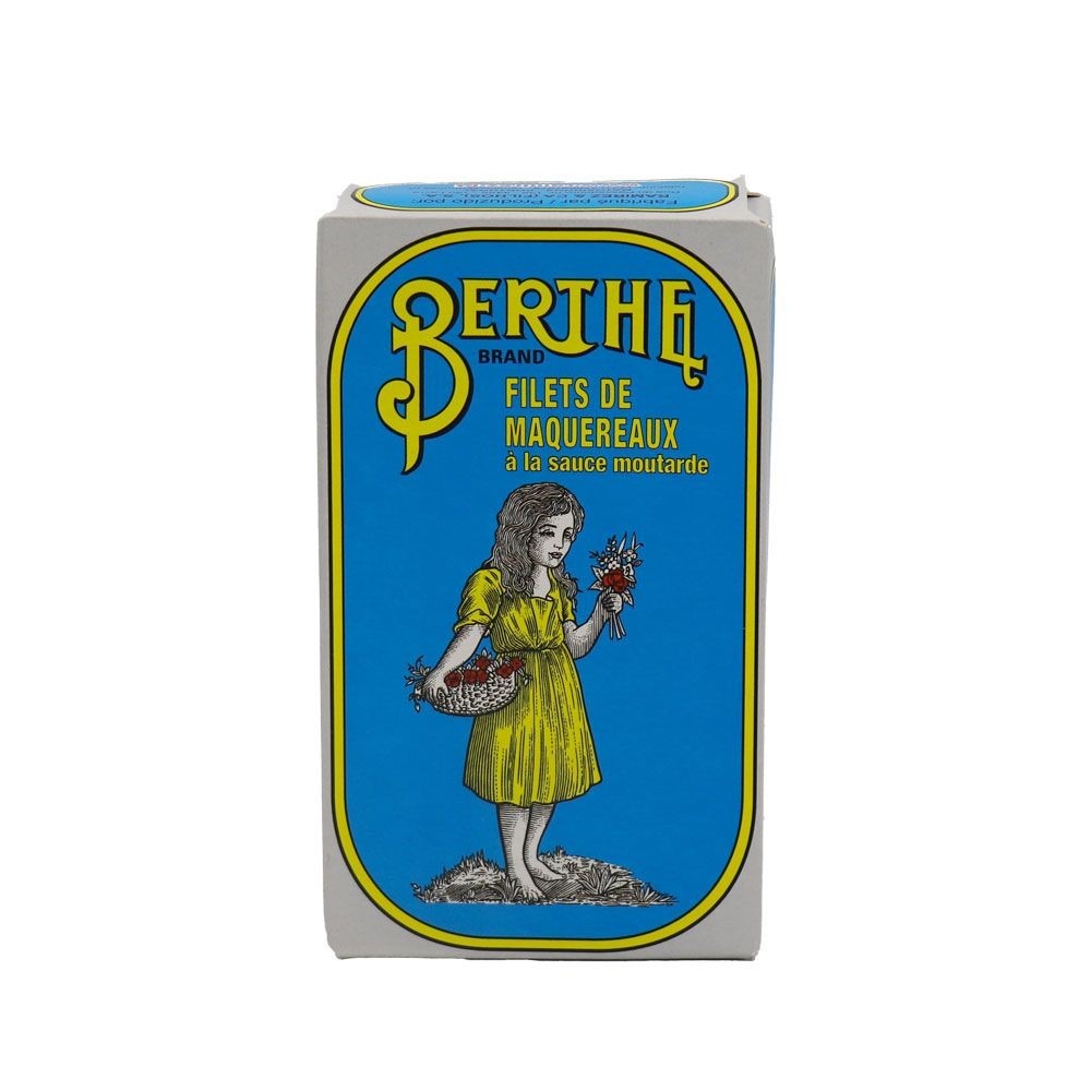 Maquereau (poisson) (55 %), eau, moutarde arôme (gluten), huile de tournesol, vinaigre d’alcool, vin blanc (sulfites), sucre, graines de moutarde, moutarde de Dijon, gomme xanthane et poivre blanc.
