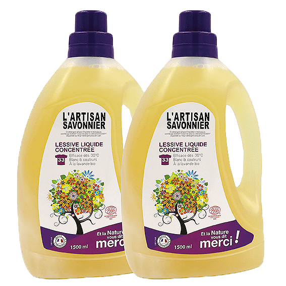 Cette lessive liquide concentrée est destinée au lavage machine et à la main pour tous les textiles, blanc et couleurs, à toute température.