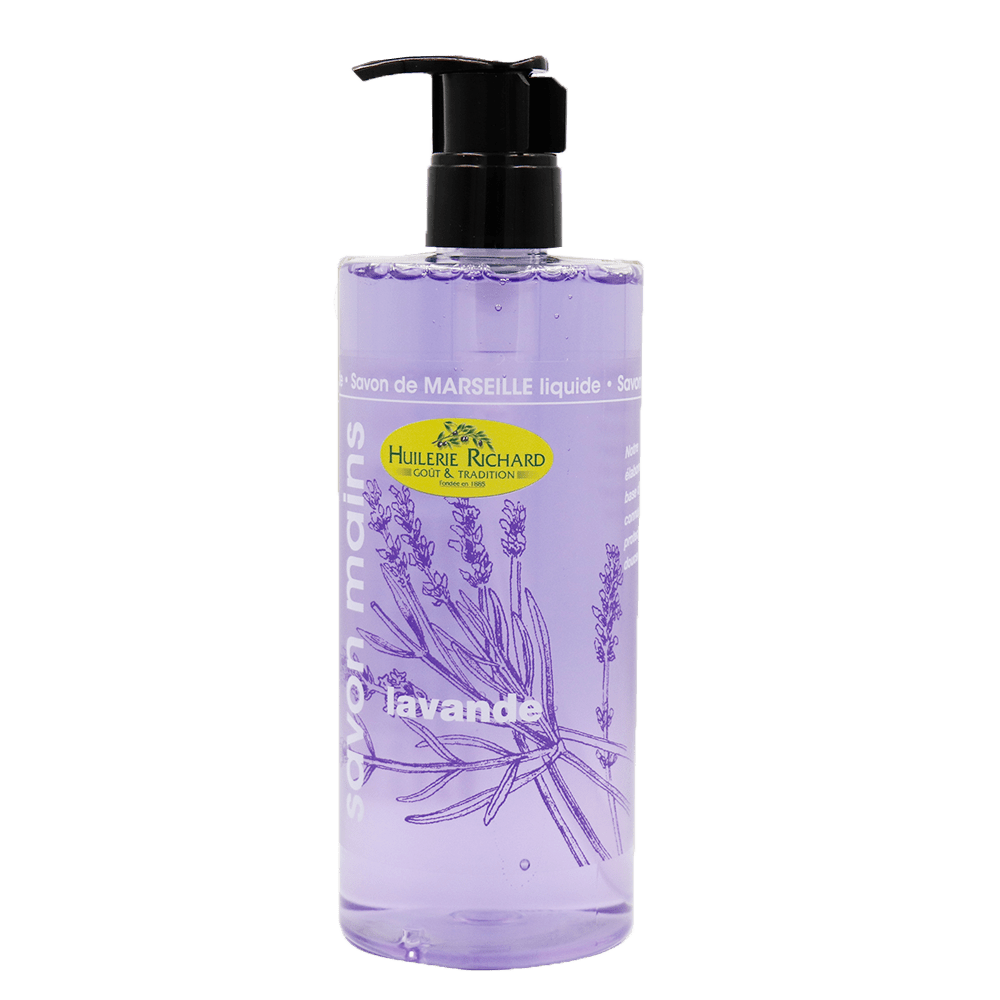 Savon de Marseille liquide pour les mains, parfumée à la lavande.