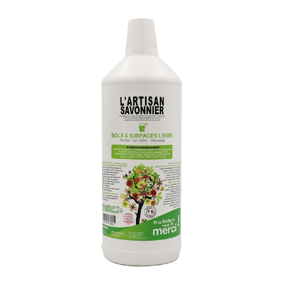 Au savon de Marseille, ce nettoyant peut être utilisé pour le nettoyage de tous les sols et surfaces lisses.
