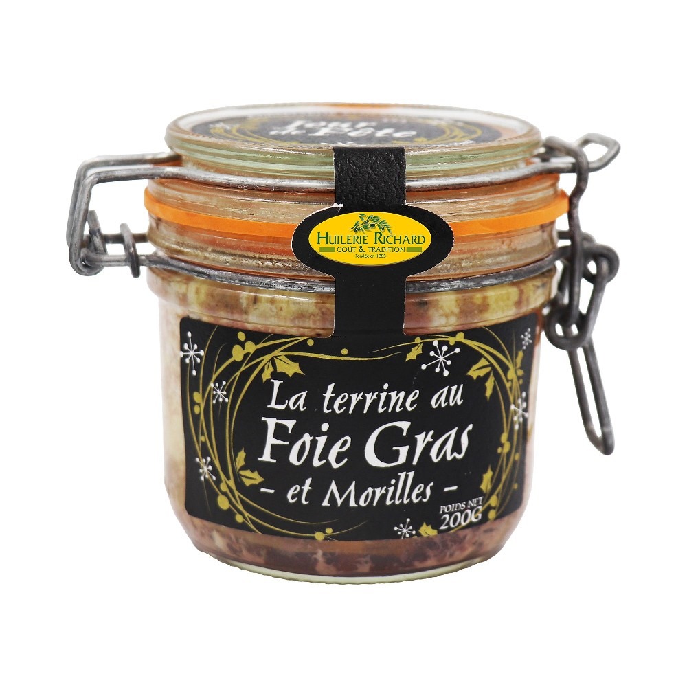 viande de porc**, foie de porc**, foie gras de canard 12%*, morilles 5%, sel*, épices, plantes aromatiques*